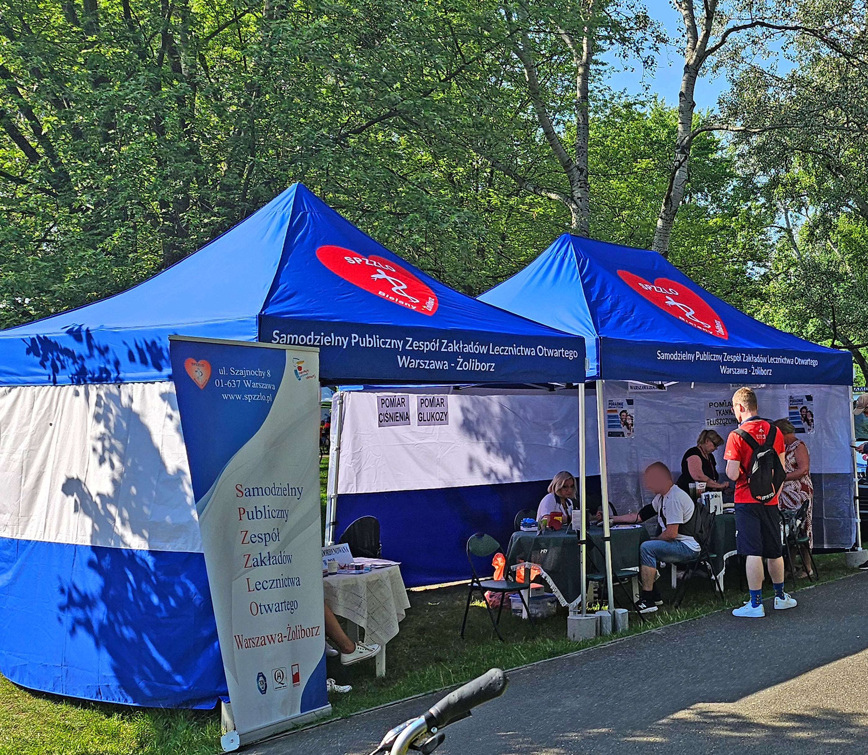 dwa namioty z logo SPZZLO Warszawa-Żoliborz